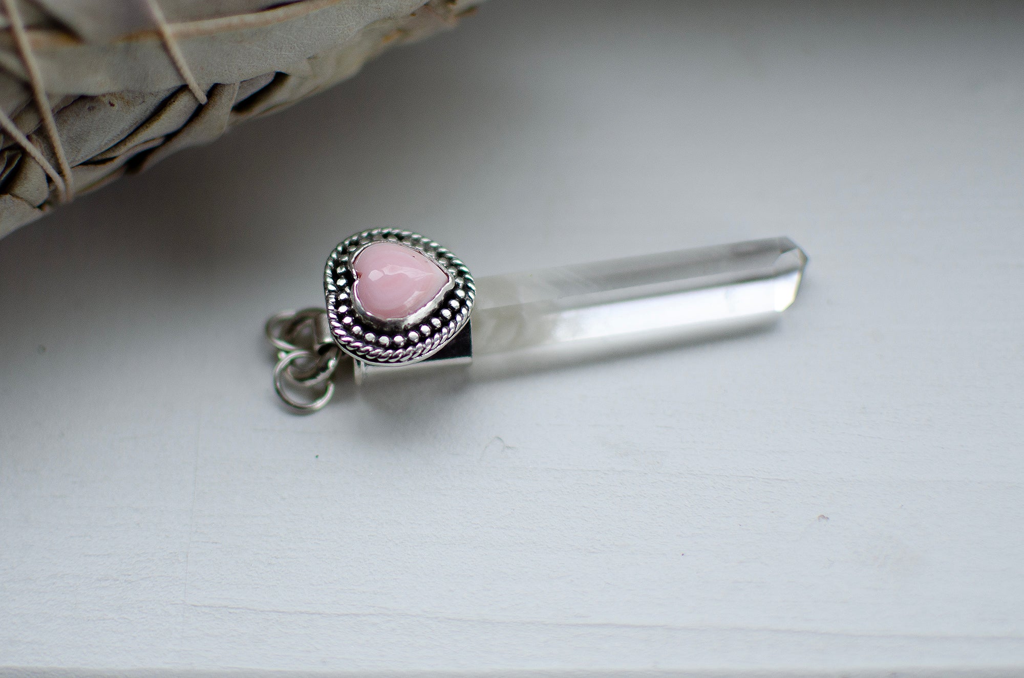 Beautiful crystal pendant handmade in fine and sterling silver paired with Queen Conch Shell and Phantom Quartz.